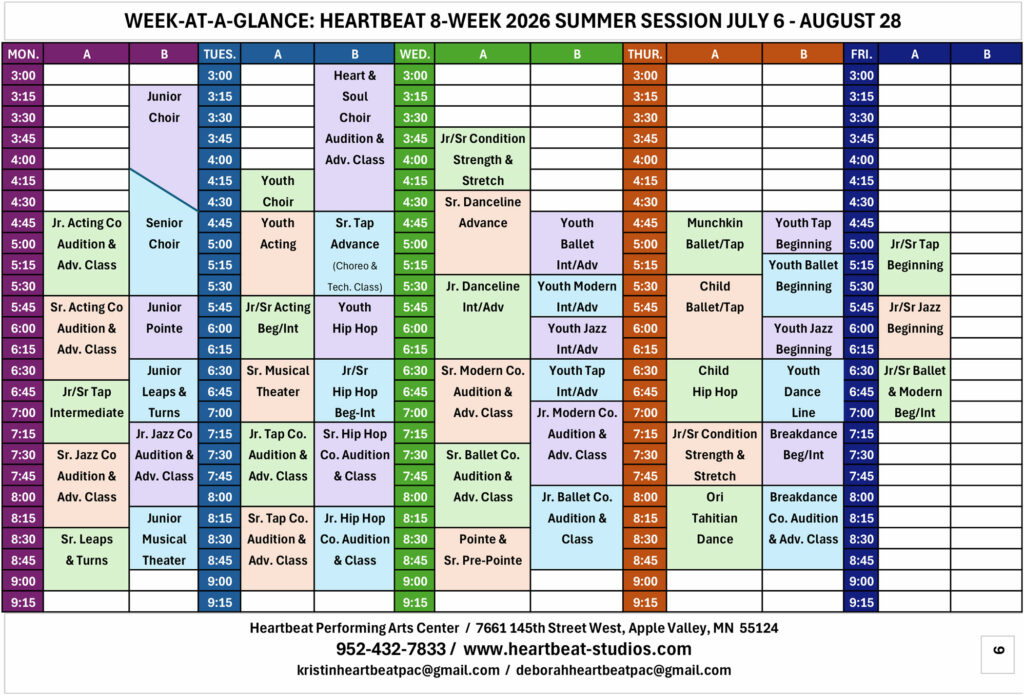 Tuition Discounts: Sept.-June 2026/2027 Session: Register by July 15, 2026 and pay no registration fee plus get a 5% discount on costumes for June 2027 show. Register by August 1, 2026 and pay no registration fee.